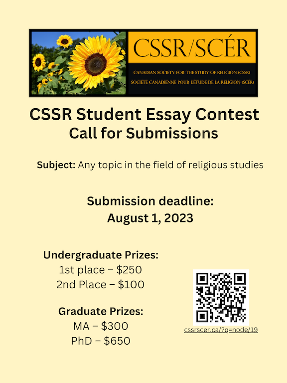 The Canadian Society for the Study of Religion (CSSR) is currently accepting submissions for its annual Student Essay Contest.